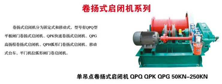 單吊點卷揚啟閉機是一種專用于水利水電工程中進水口快速閘門的啟閉的裝置,即當水輪發(fā)電機組因負荷調速系統(tǒng)失靈,在出現(xiàn)飛逸之前或壓力管道出現(xiàn)破裂事故時,通過自控或手動,將閘門在2分鐘內快速關閉,達到保護機組及廠房安全之目的。