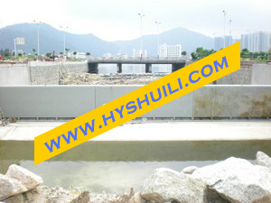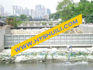| 底橫軸旋轉(zhuǎn)閘門又稱(鋼壩) | 底橫軸翻轉(zhuǎn)門又稱(鋼壩) |